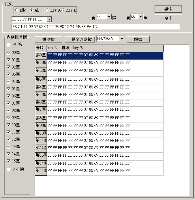 比較簡單只要針對要加密的區域勾選即可,或全選、成為全加密卡,